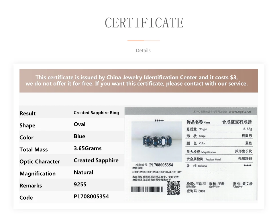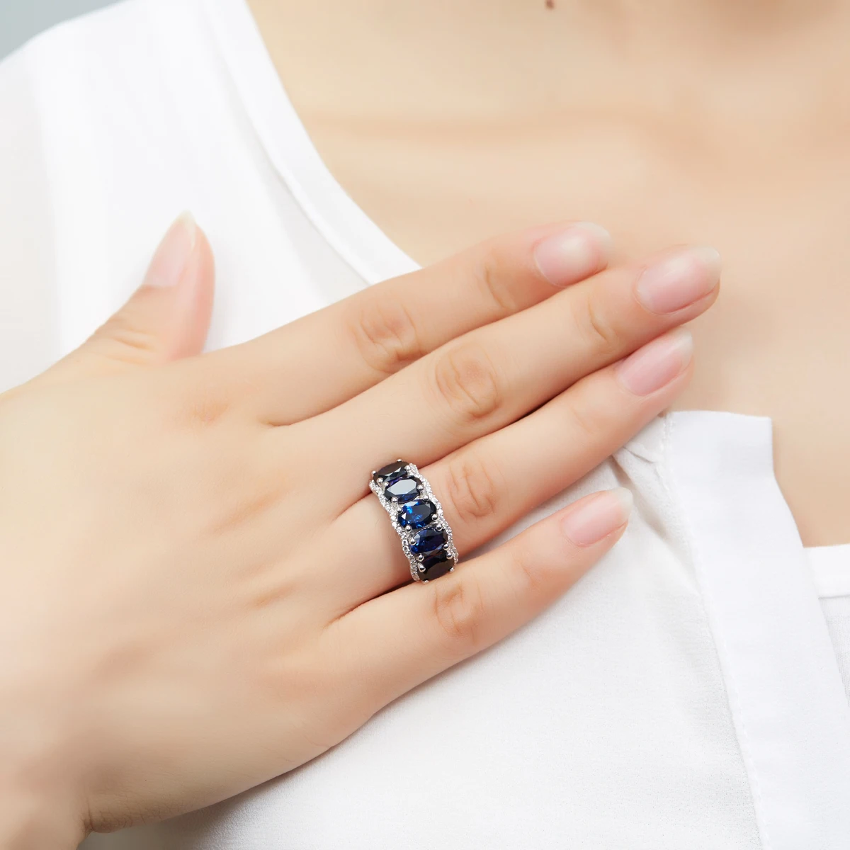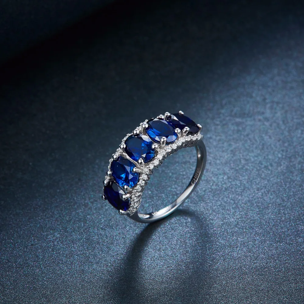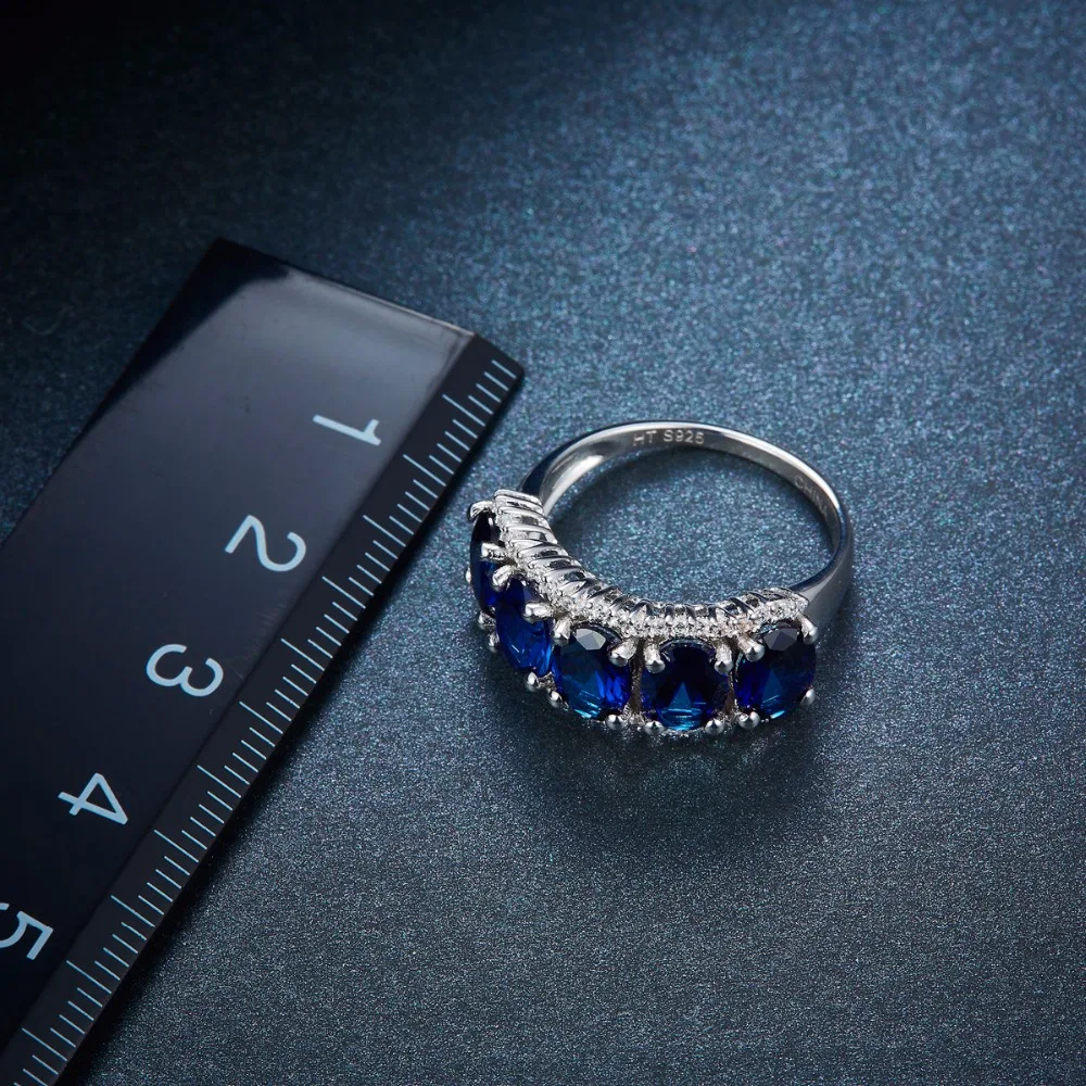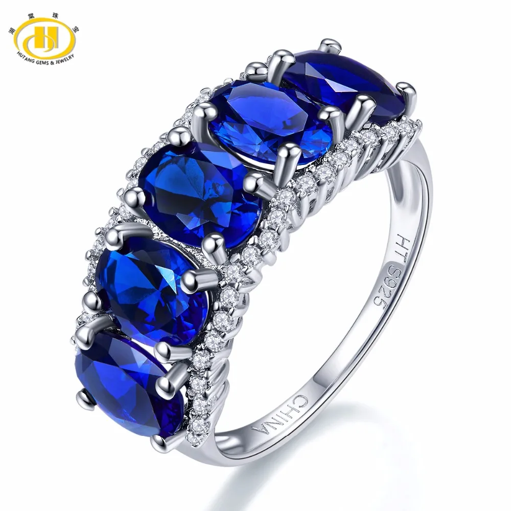 Hutang Nature 5.0ct Created Blue Sapphire Ring Solid 925 Sterling Silver Gemstone Fine Jewelry Five-stone Classic Style Women