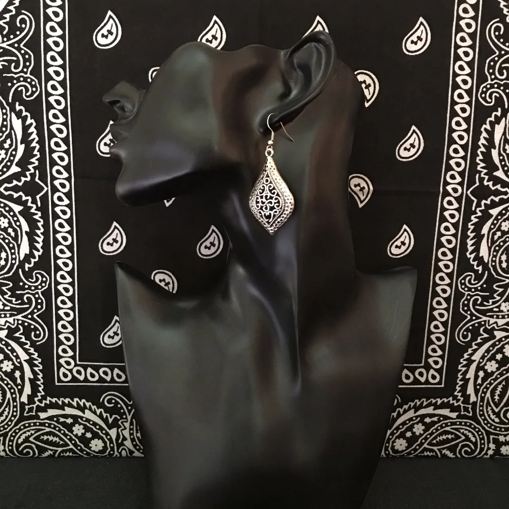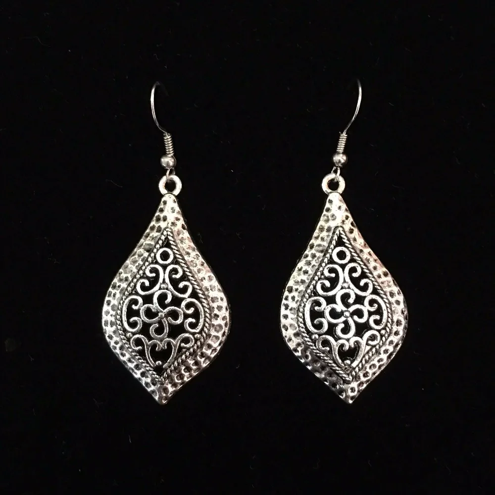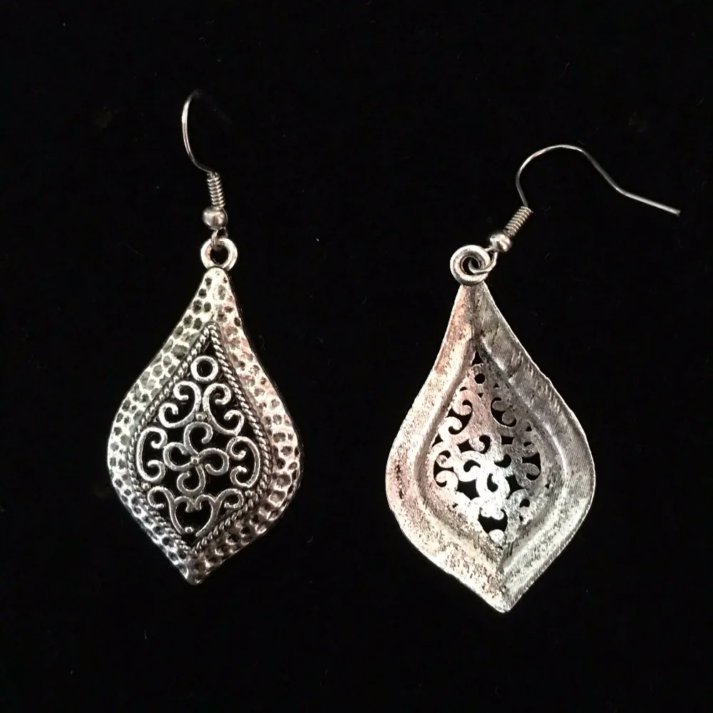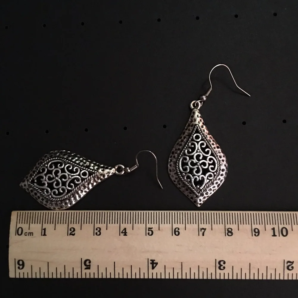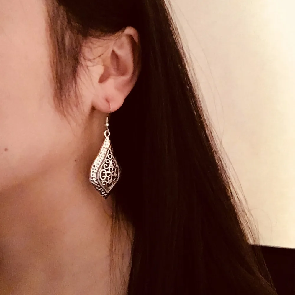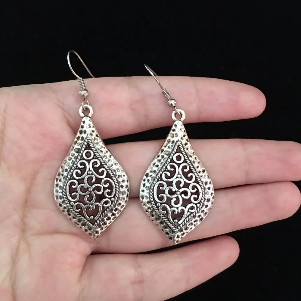 India Jaipur Gypsy Tribe Earrings Jewelry Teardrop Flower Carved Silver Jewelry Thailand Nepal Mandala Boho Hippie Classical