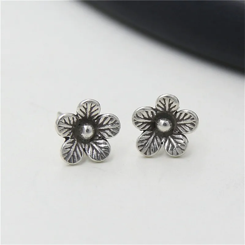 100% Authentic 925 Sterling Silver Flower Stud Earrings For Women Compatible with Jewelry Original Thai Silver Gift