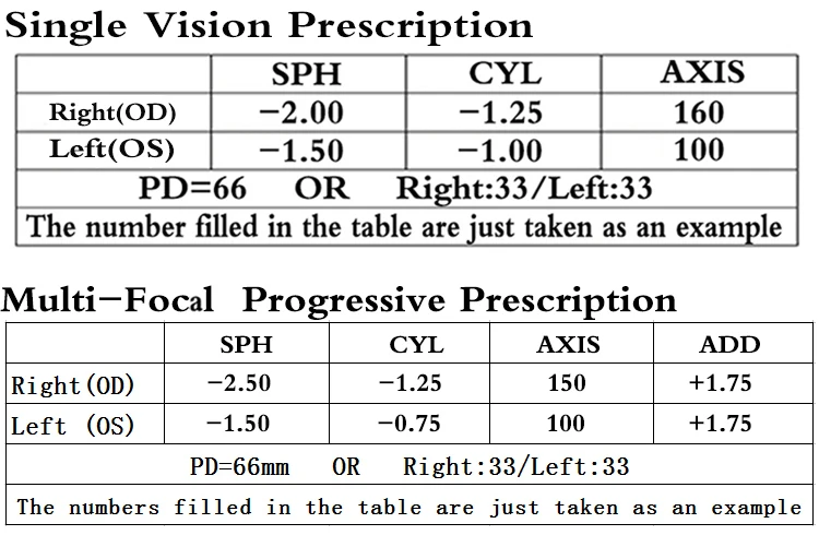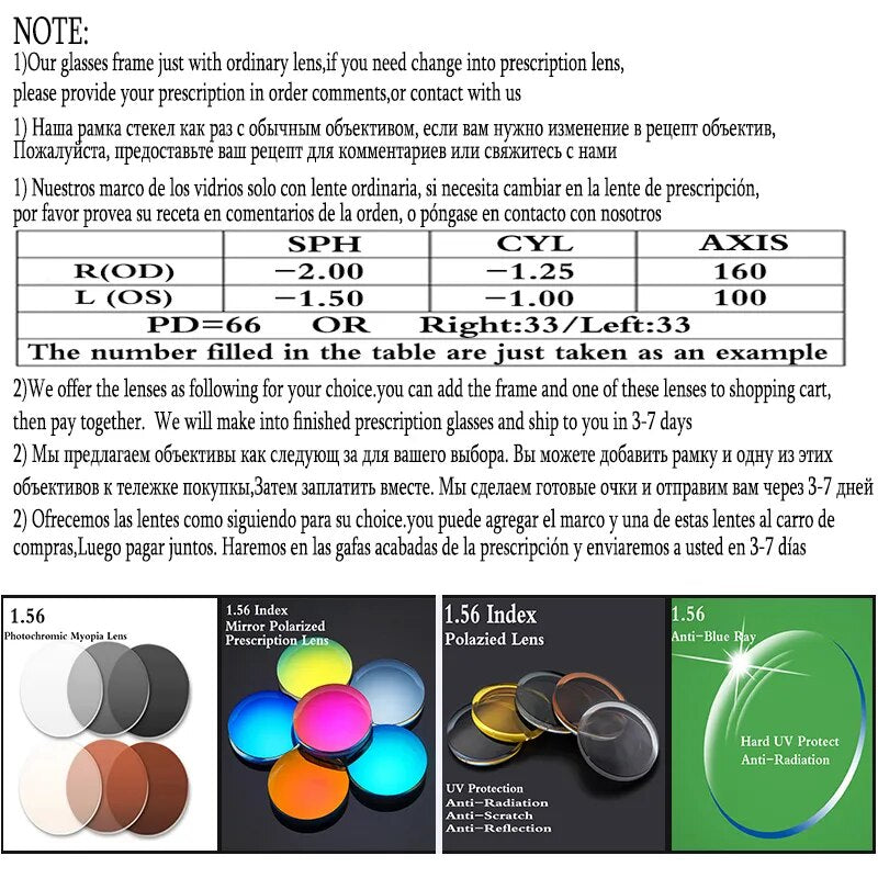 ▲Our glasses frame just with ordinary lens,if you need change into prescription lens,please provide your prescription to us in order comments as following,or contact with us