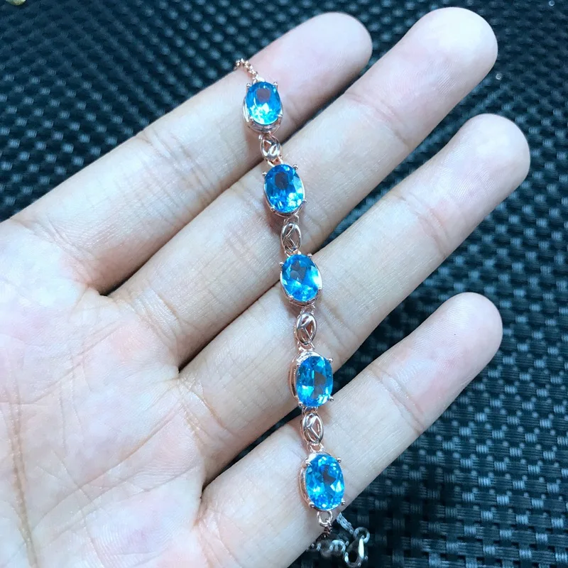Fine jewelry Natural Topaz Stone Bracelet wholesale 925 sterling silver inlaid support identification