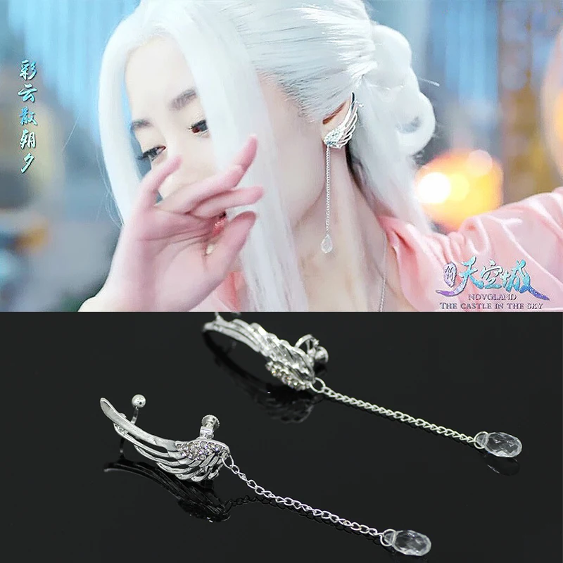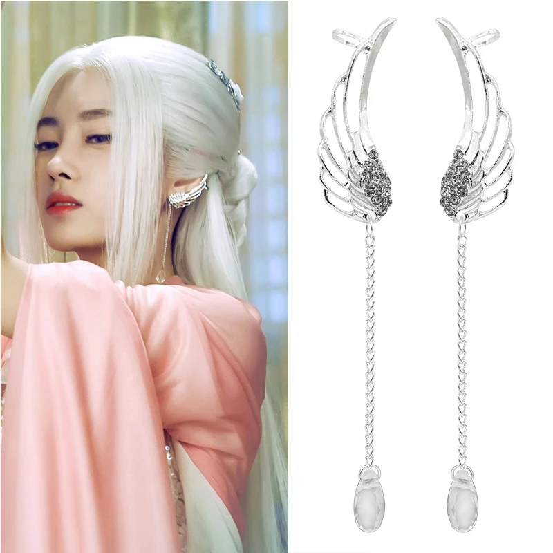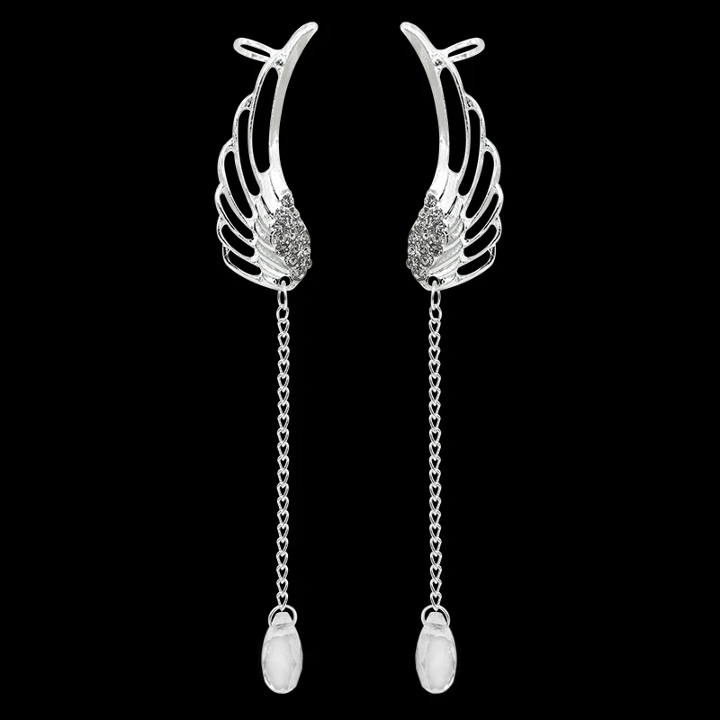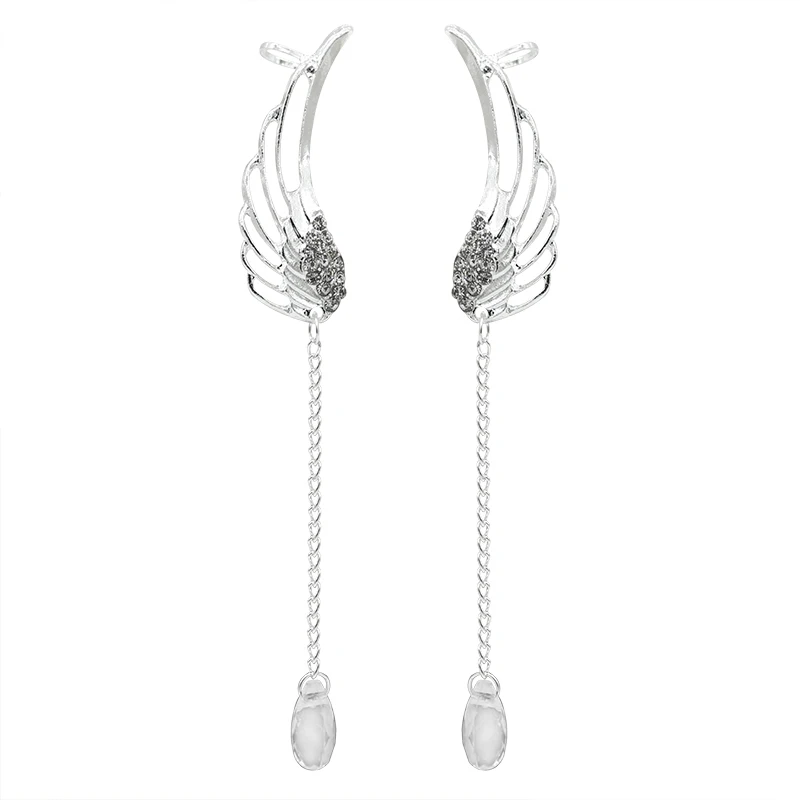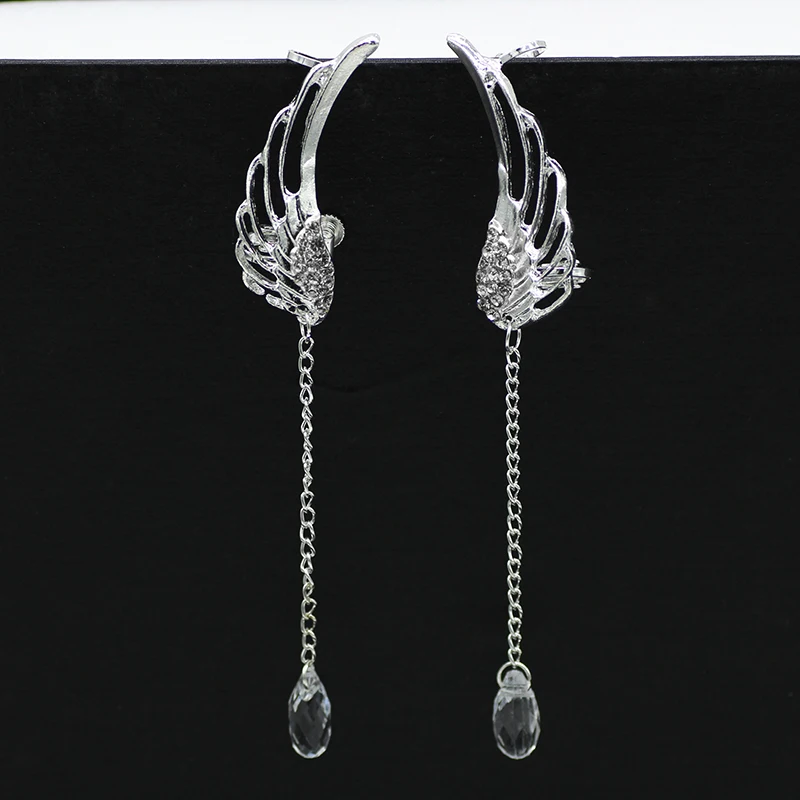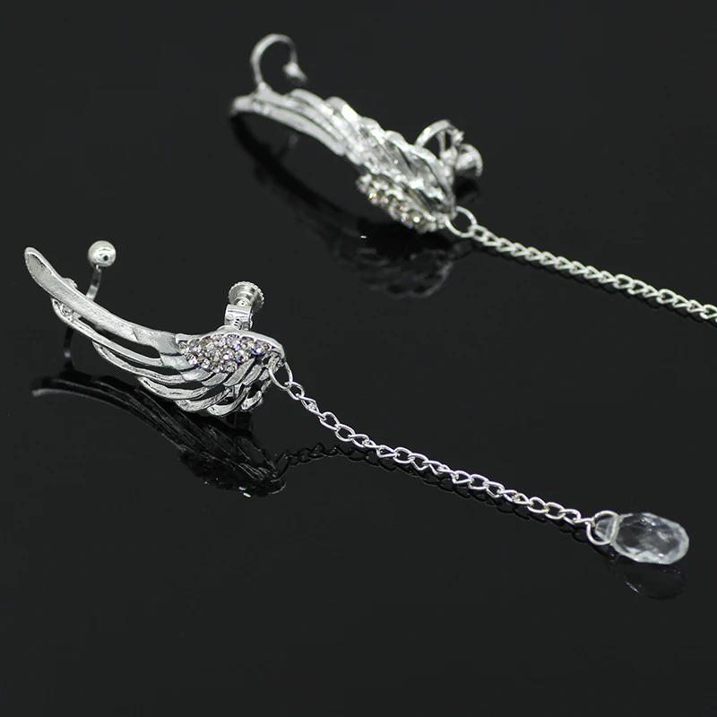 2017 Fashion Anime Tassel Earrings Angel Wings Feather Ear For Women No Ear Hole Rhinestone Charms Wedding Earrings Dropshipping