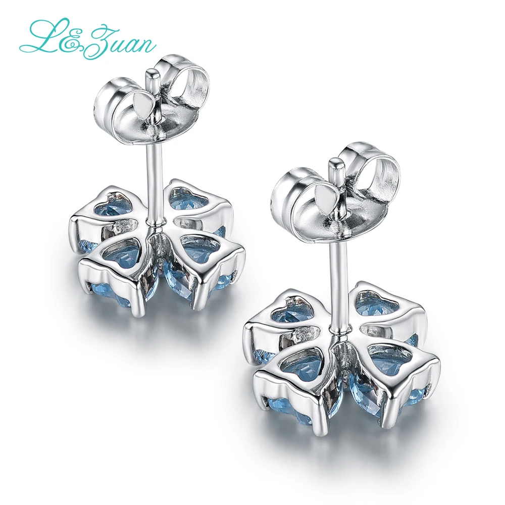925 sterling silver earrings natrual 2.56ct Topaz blue stone flower stud earrings fine jewelry for women