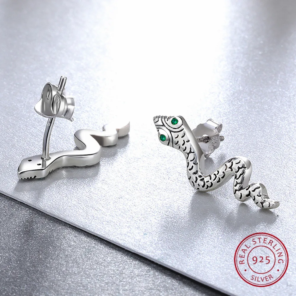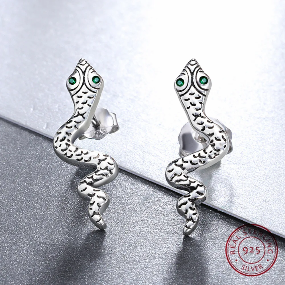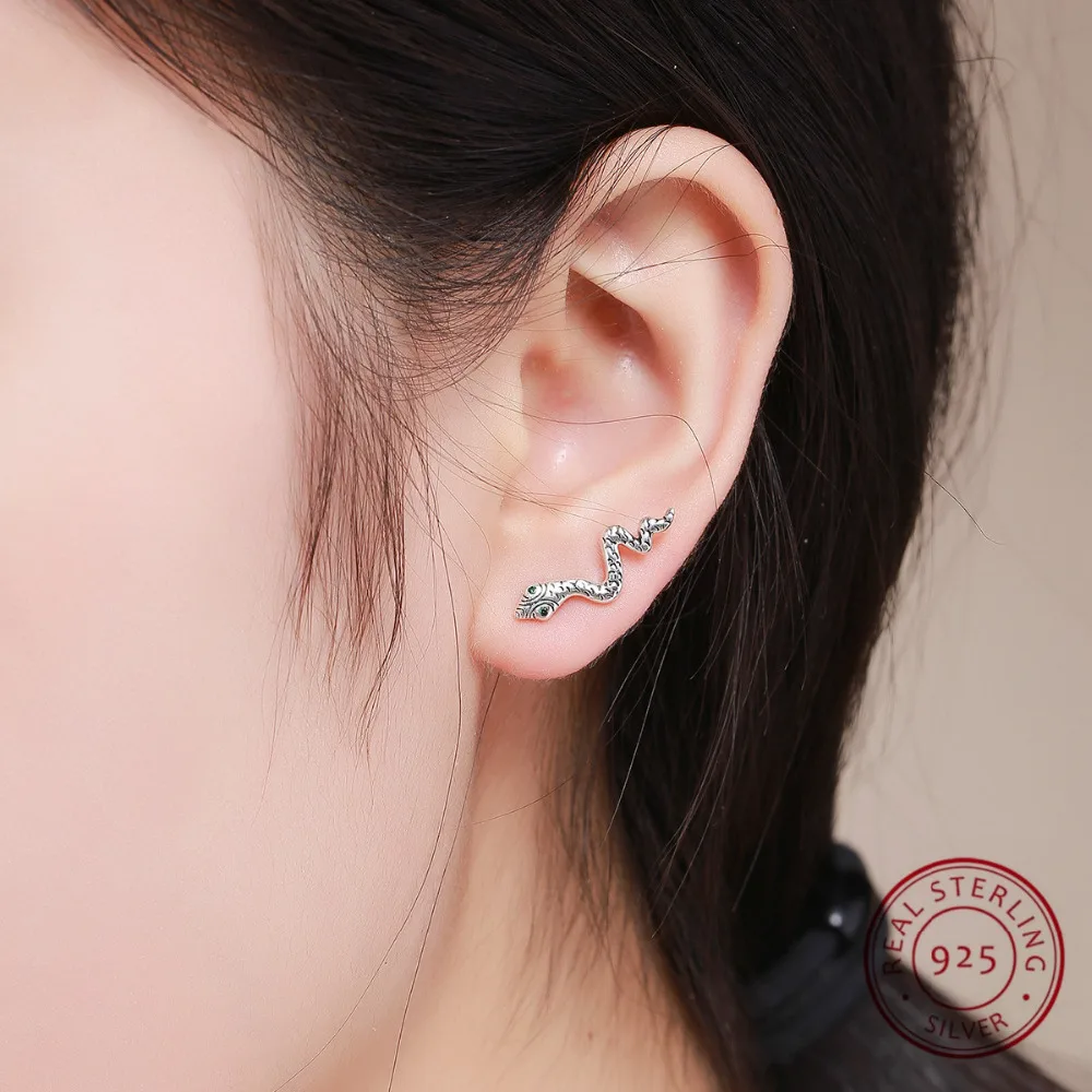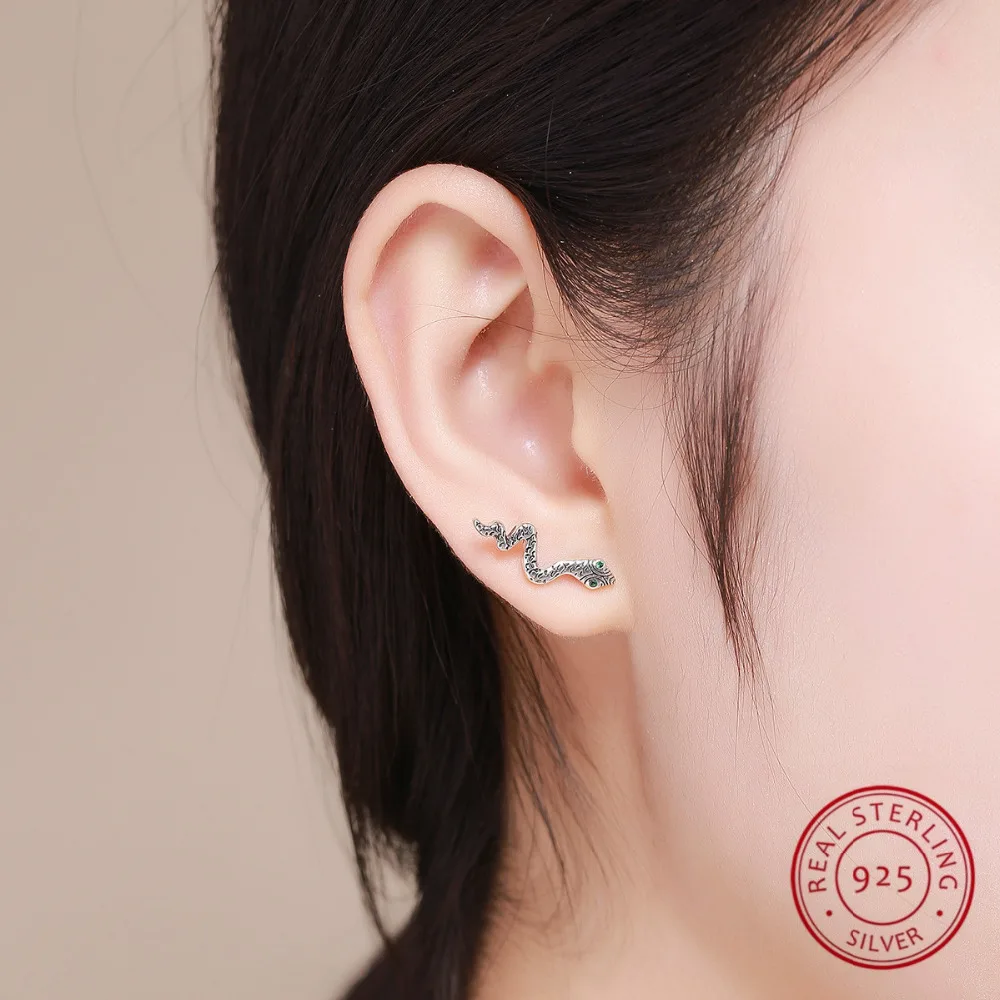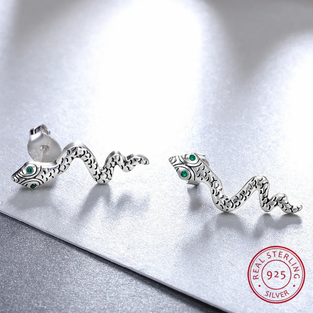 100% Genuine 925 Sterling Silver Charm Snake Stud Earrings for Women Luxury Fine Jewelry Gift Brincos Vintage Earrings