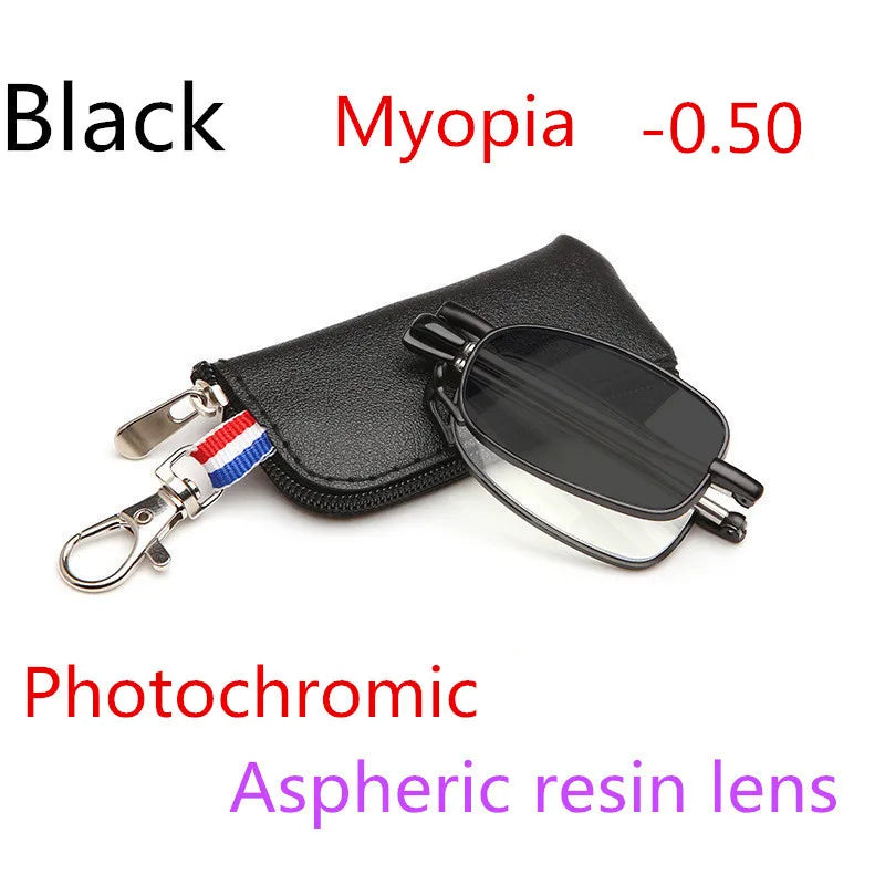 Men's And Women's Sun Photochromic Foldable Myopia OCptical Prescription Mini Glasses 0 -0.50 -0.75 To -4.0