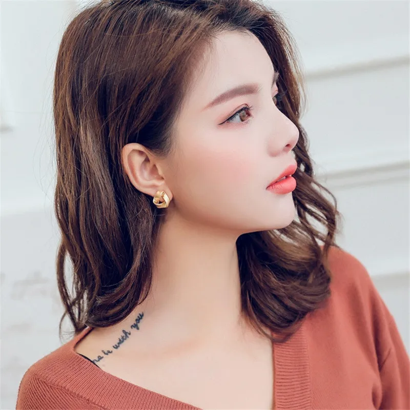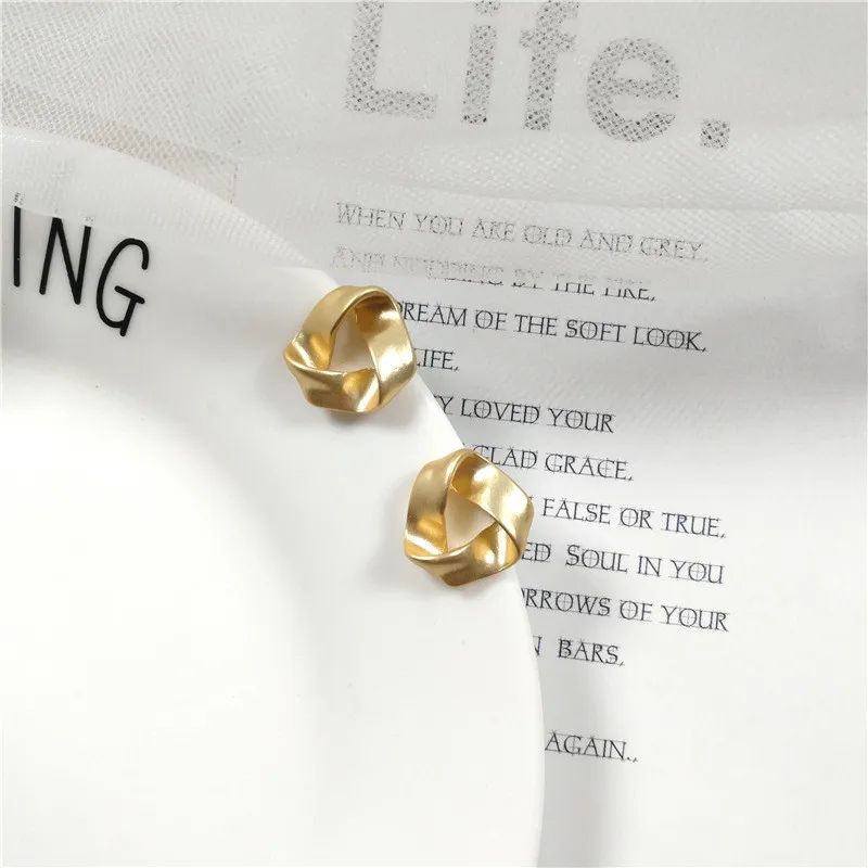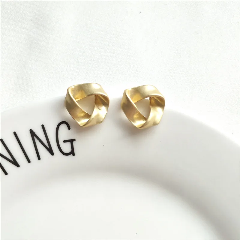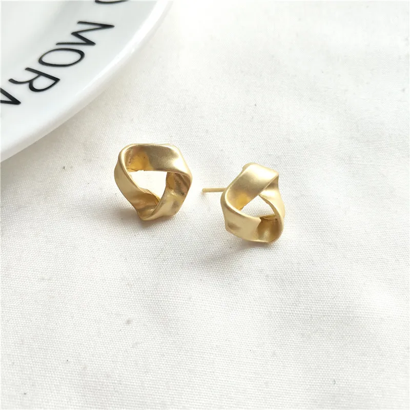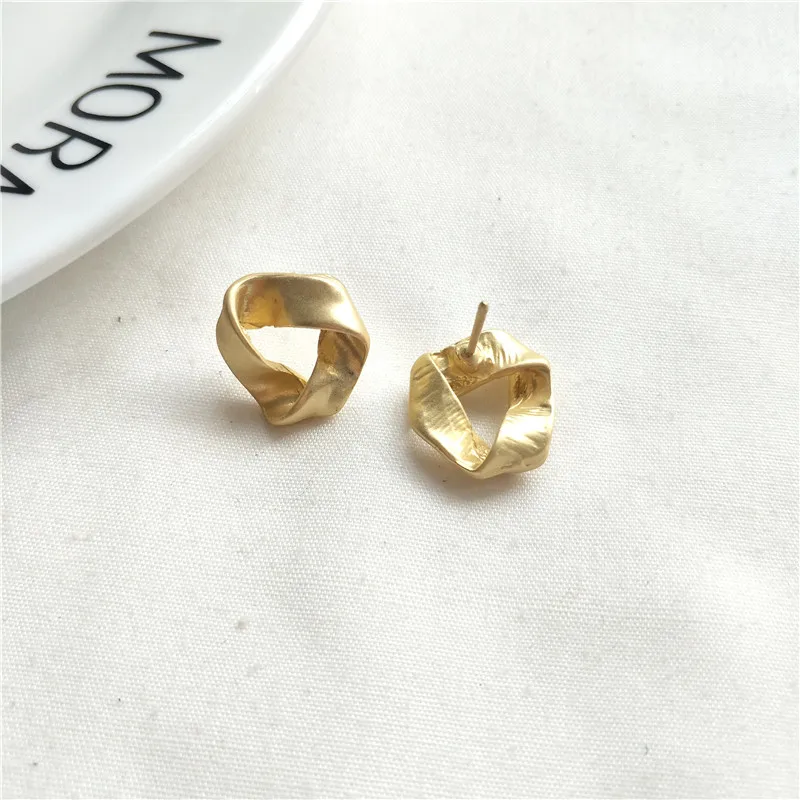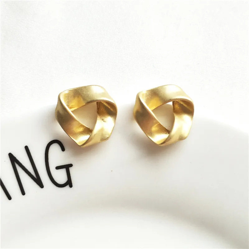 MTCHONG Europe and America Simple Golden Plated Metal Stud Earrings Vintage Punk Geometric Distorted Button Shape Earrings 742