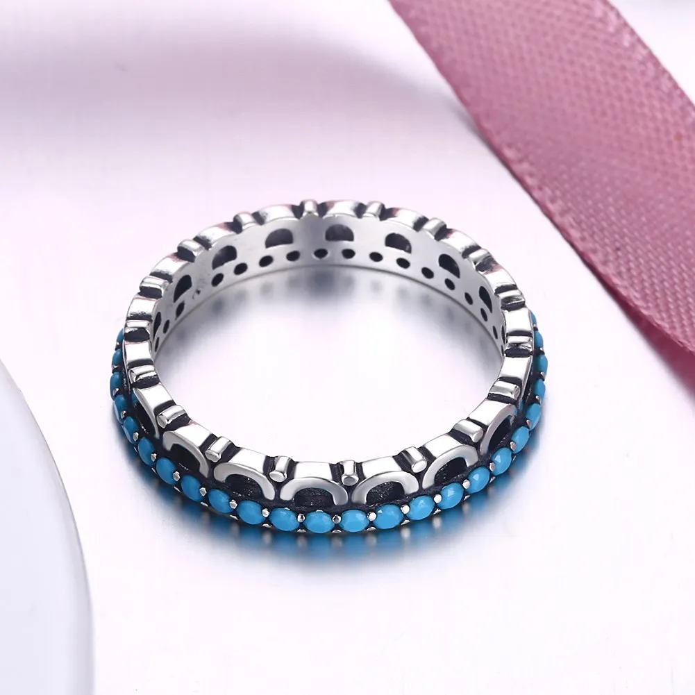 Original Pure 925 Sterling Silver Vintage Turquoise Size 6,7,8 Finger Rings for Women 925 Silver Jewelry SVJZ6248