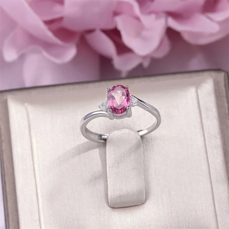 Natural Pink Topaz Gemstone Rings For Women Fine Jewelry Solid 925 Silver Adjustable Ring Wedding Engagement Bridal Anel R-TO016