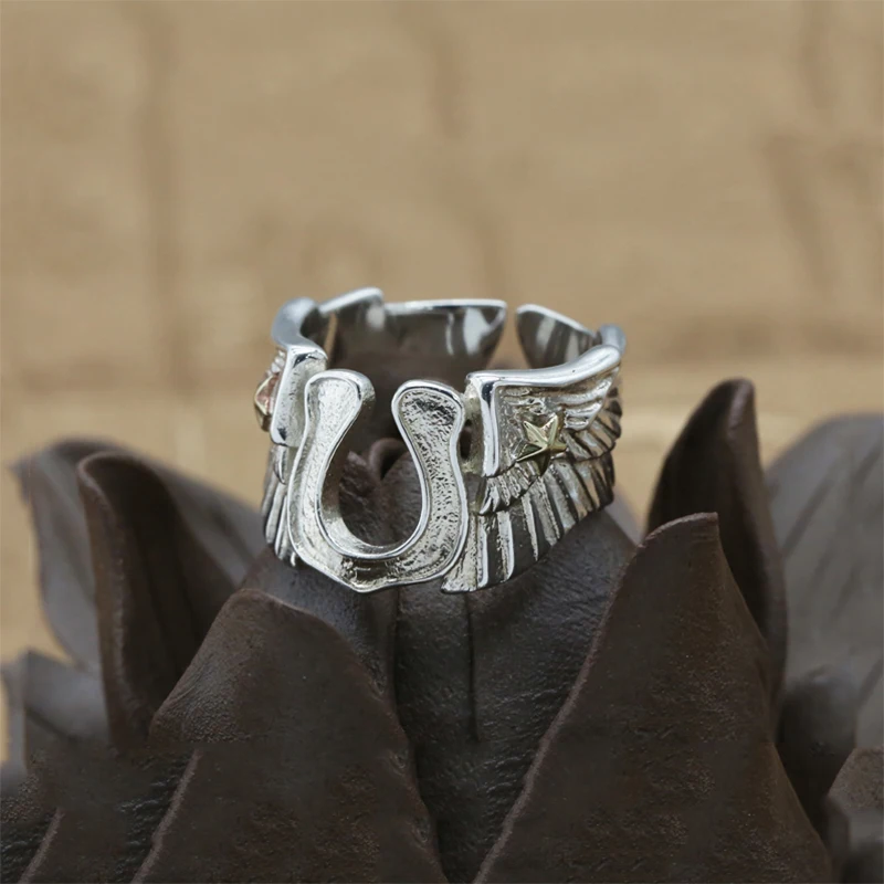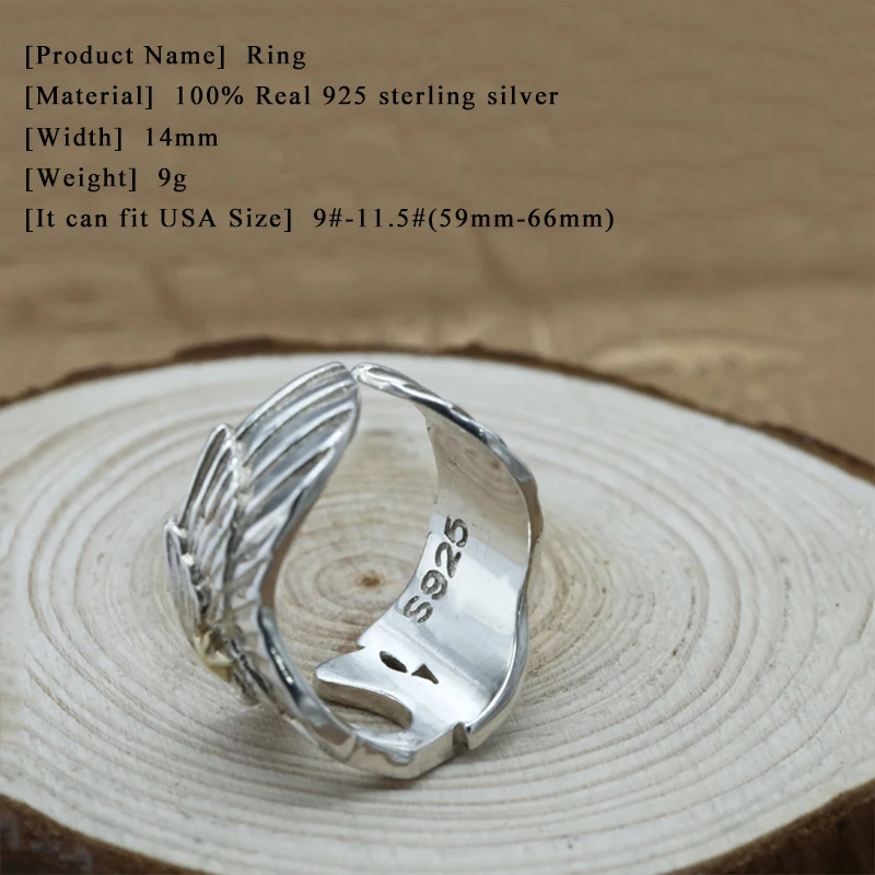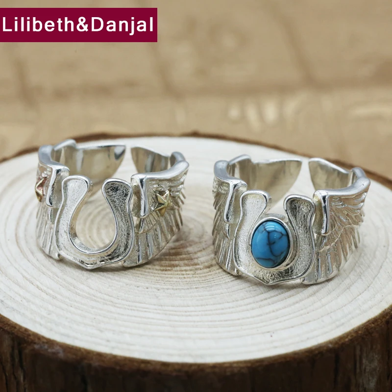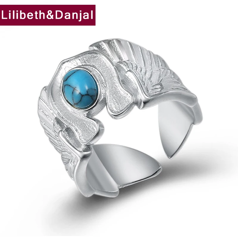 Natural turquoise Ring 100% Real 925 sterling silver Jewelry Angel Wing Men Ring Gift New Arrival Gift for boyfriend FR60