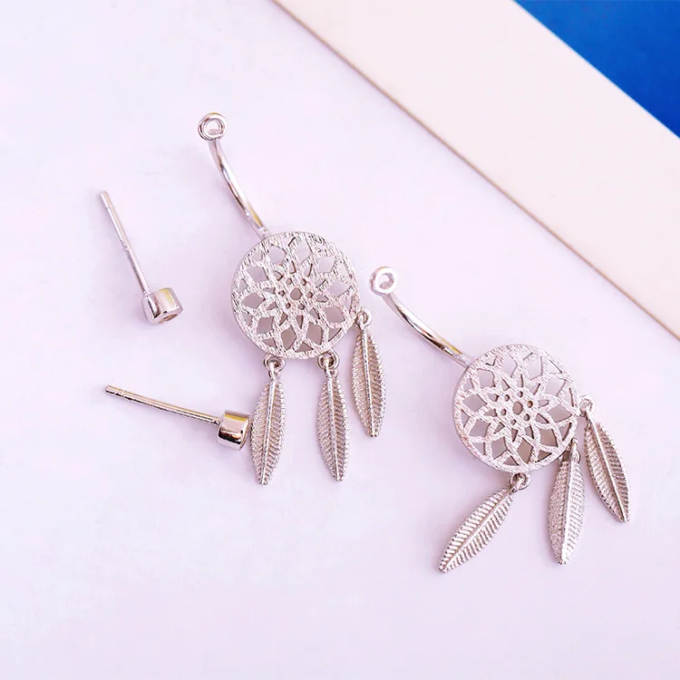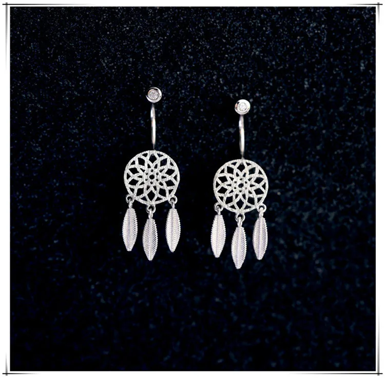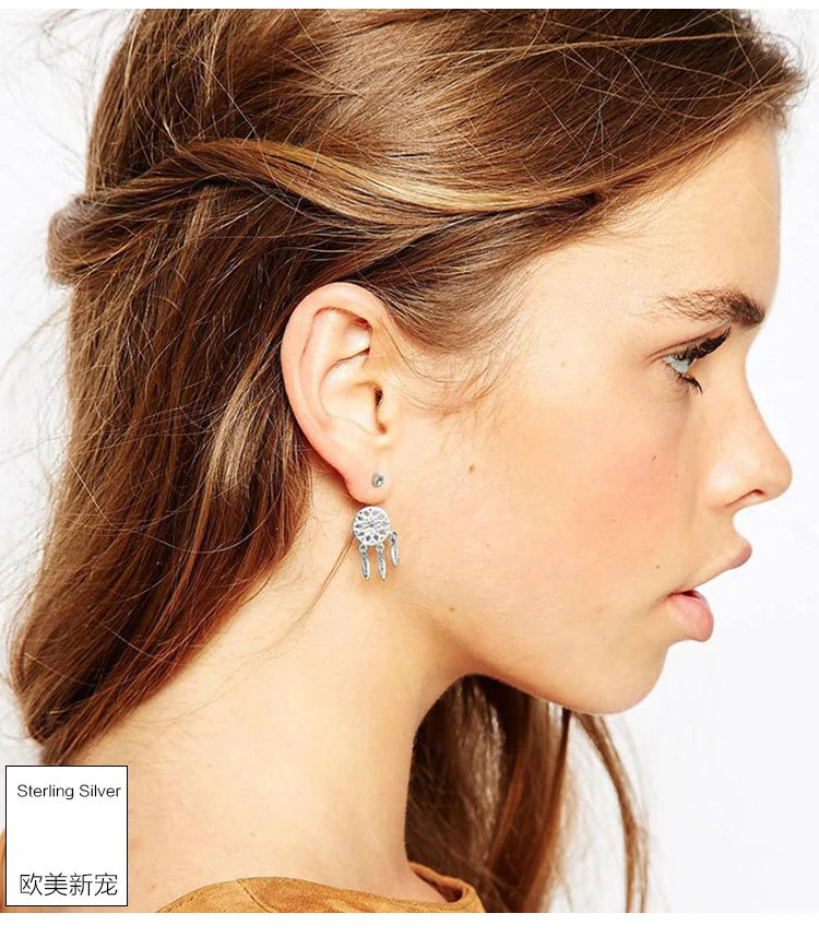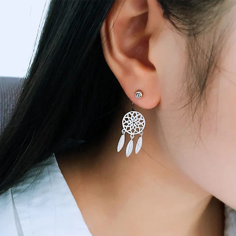 New ArrivalsFashion Hanging Feathers Dreamcatcher Earrings 925 Silver Stud Earrings For Women Jewelry