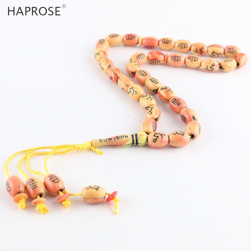 New Ellipse Copal Green Beads Bracelet 33 Beads tasbih Muslim Ala Beads Rosary Brown Oval 10x13mm tasbin Holid Gifts