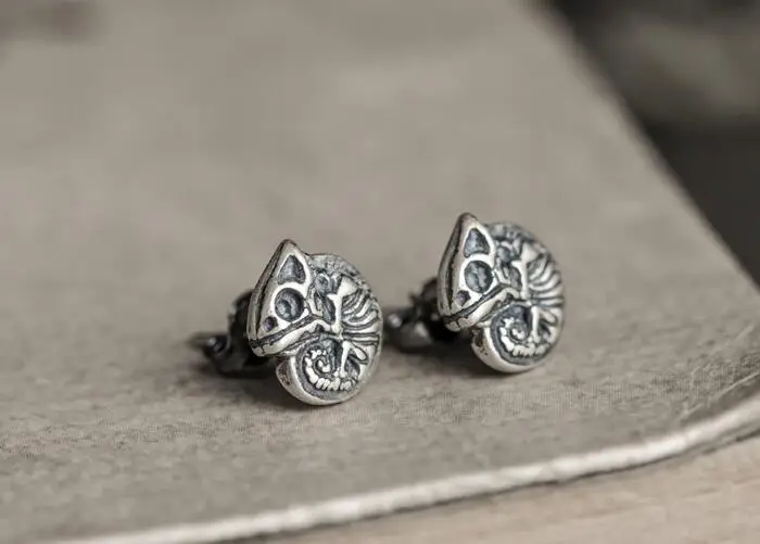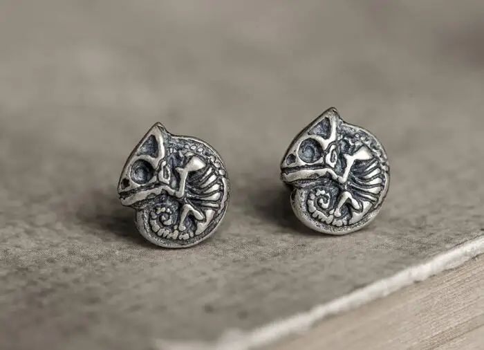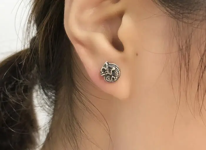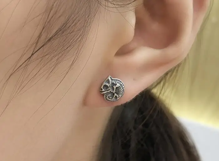 New Punk Real 925 Sterling Silver Animal Skeleton Stud Earrings Chameleon Iguana Shaped Cute Earrings Prevent Allergy Jewelry