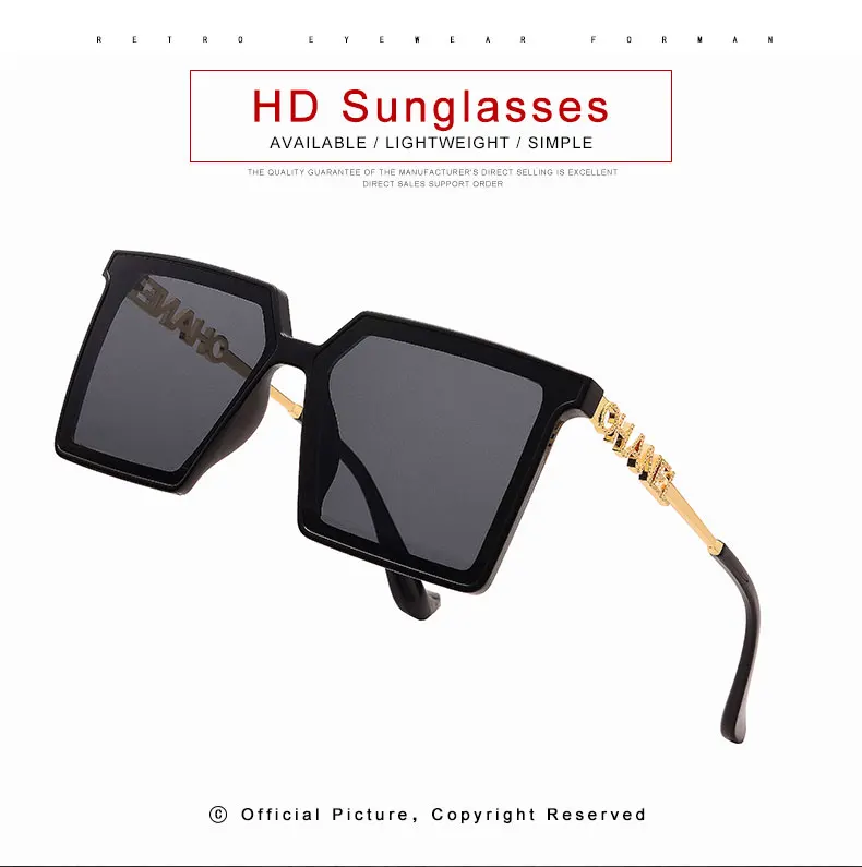 New Square Sunglasses Women Vintage Letter Frame Sun Glasses Luxury Brand Design Classic Shades Driving UV400 Gafas Oculos