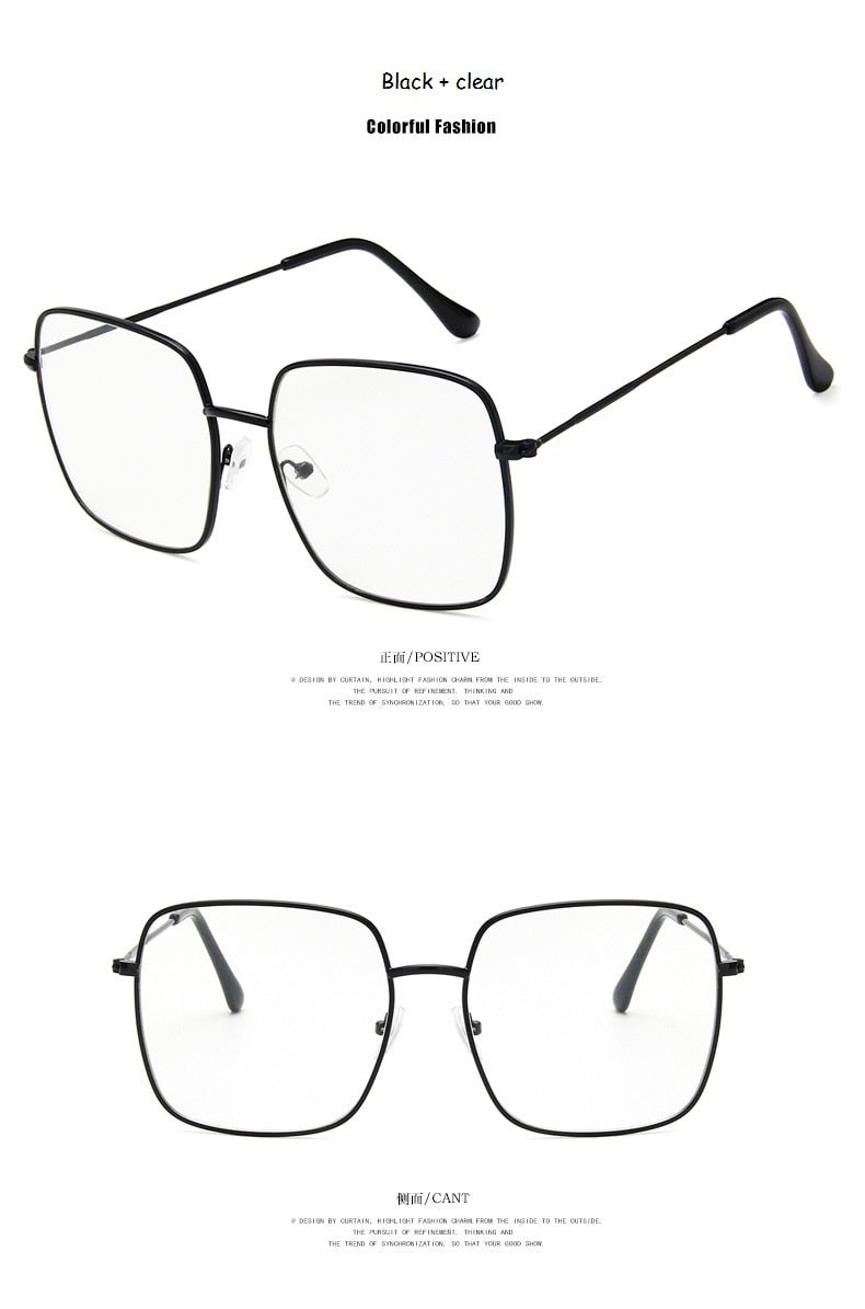 Newest square frame vintage Eeygalsses Women Oversized Big SizeOptical Frames Metal Glasses Frame Clear lens Eyeware