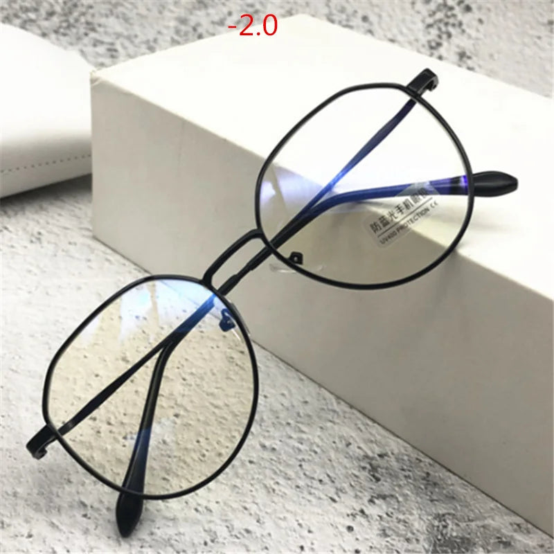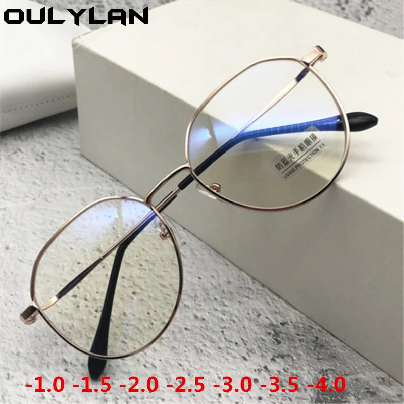 Oulylan -1.0-1.5-2.0 to-4.0 Metal Finished Myopia Glasses Men Women Anti Blue Light Eyeglasses Prescription Shortsighted Eyewear