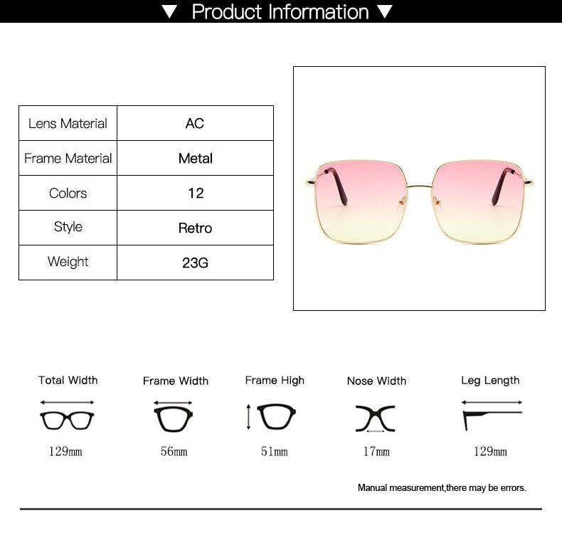 Oversized Shades Women Sunglasses Black Fashion Square Big Frame Sunglasses Female Vintage Retro Glasses Unisex Oculos Feminino