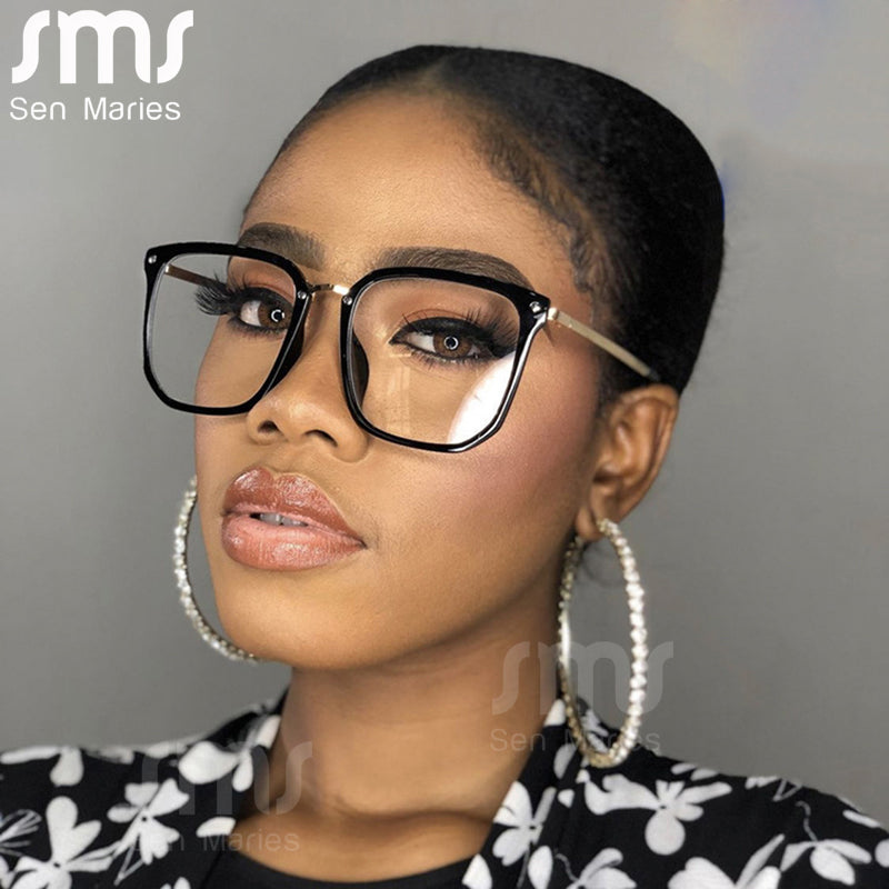 Oversized Square Eyeglasses Women Eyewear Punk Big Eye Glasses Men UV Protection Spectacle Frames Solid Color