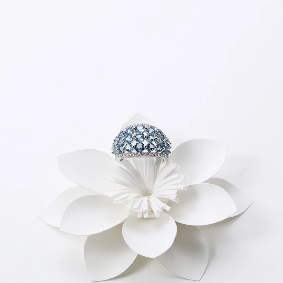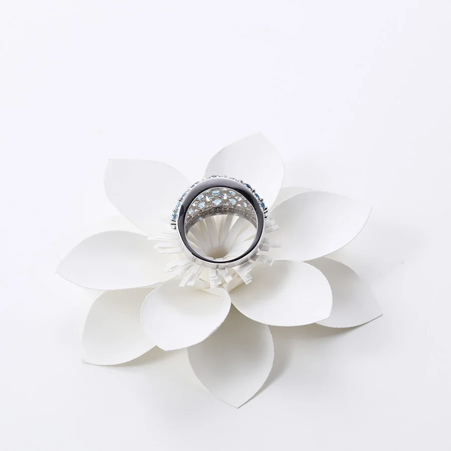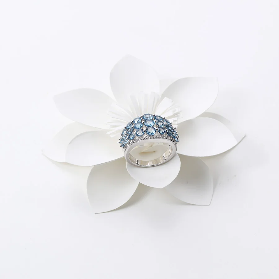 Natural Gemstone Mix Size Round Shape 3.7cts London Blue Topaz With 0.53ct White Zircon Sterling Silver 925 Ring