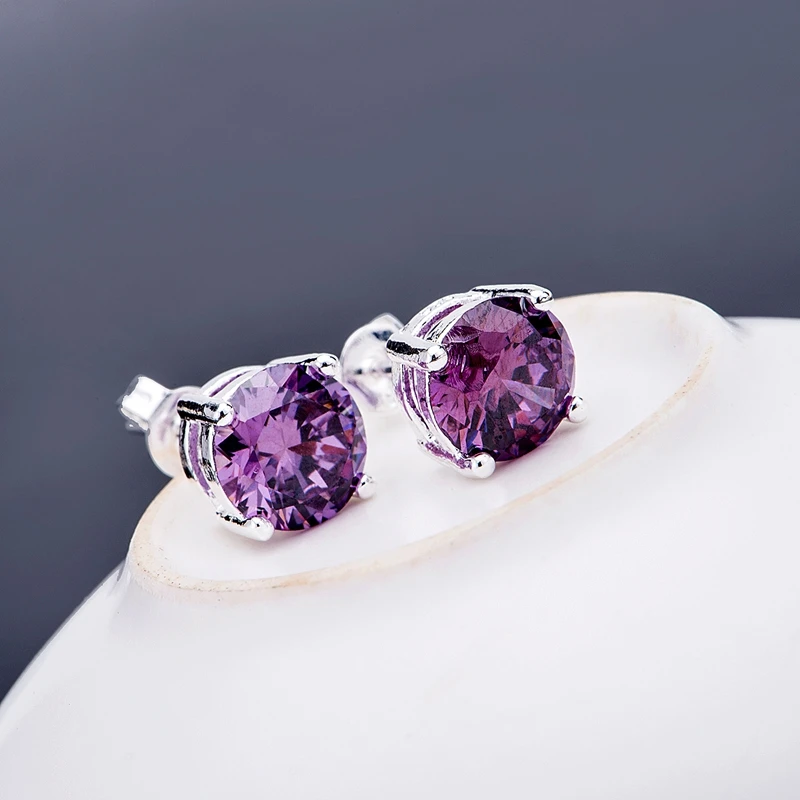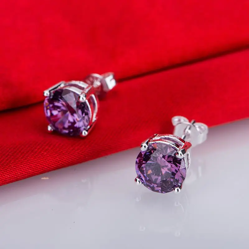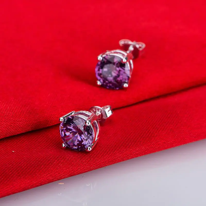 purple crystal stone silver plated earrings 925 jewelry for women silver earrings LQ-E083 TULPDAVV