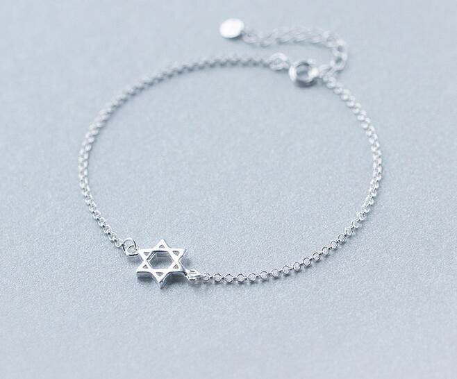 Real. 925 -Sterling -Silver-Jewelry David of Star Chain Bracelet Anklet adjustable Charm jewelry GTLS257
