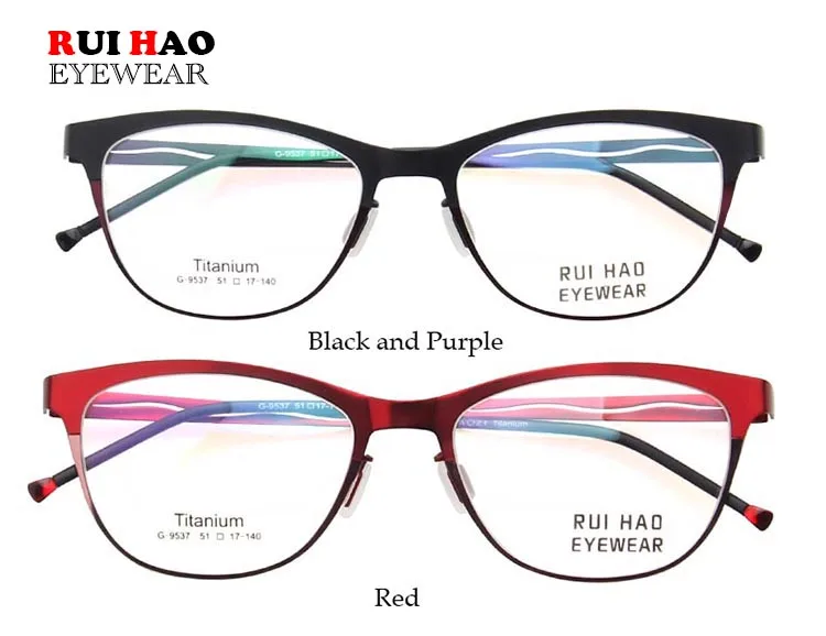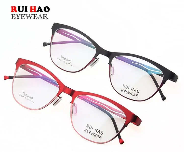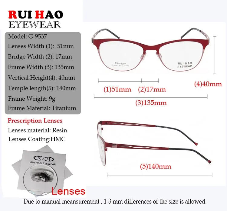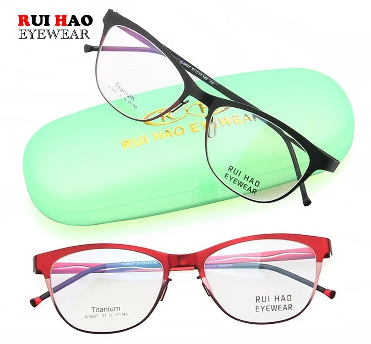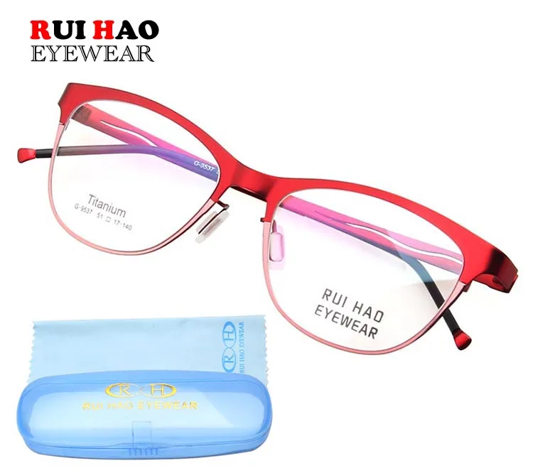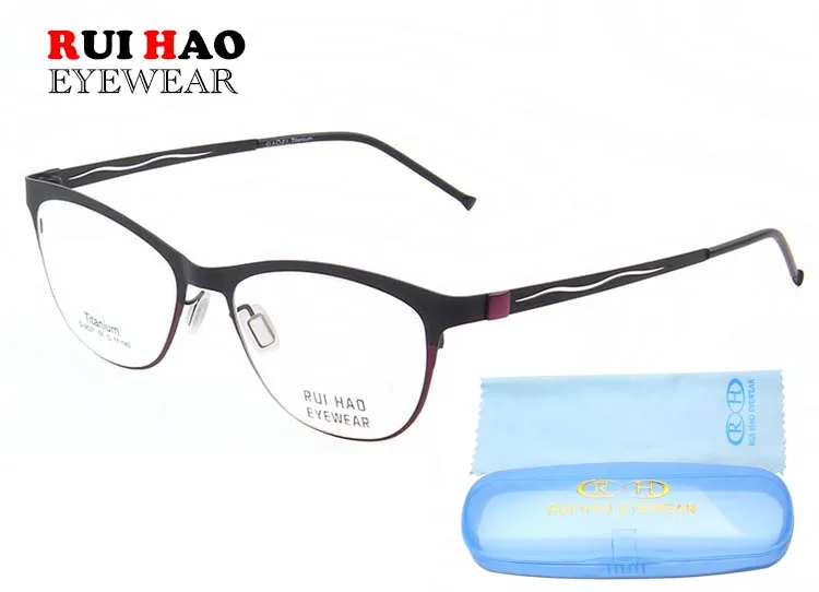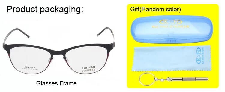 Model Number: 9537 Brand: RUI HAO EYEWEAR Gender: Women Style: Optical Frame Material: Titanium Condition: New Weight: 9g Lens : Clear Demo lens (only for decoration) Package: 1 Eyeglasses Frame,