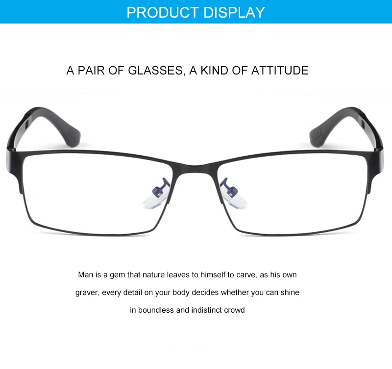 High quality stainless steel frame with super elastic TR90 leg. Environment-friendly and ergonomic structure.
