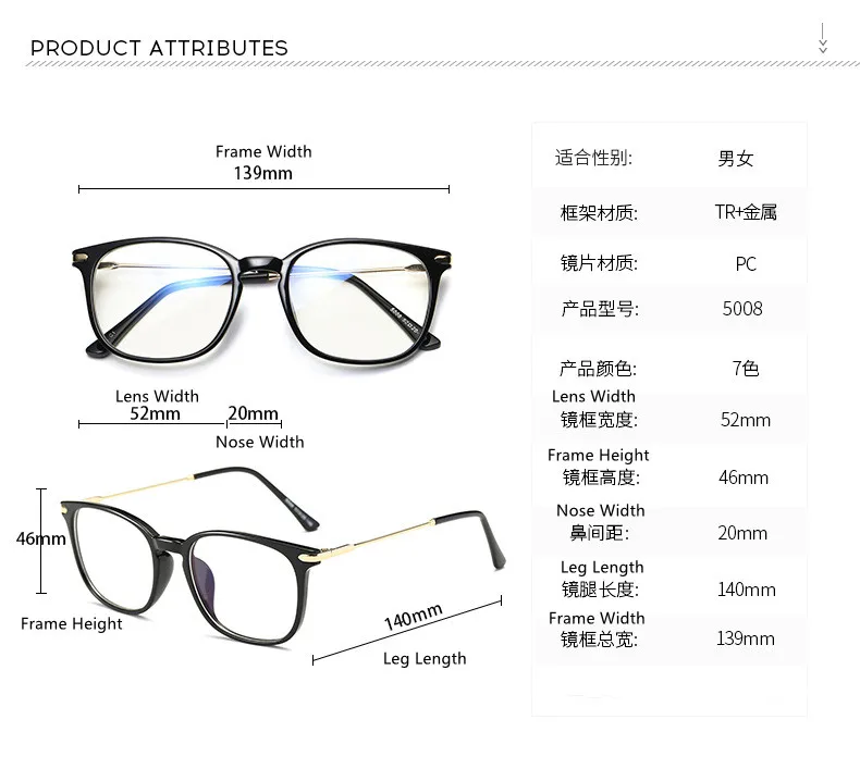 TR90 Anti Blue Light Spectacle Frames Men's Computer Sports Goggles Ladies Lightweight Flexible Myopia Eyewears Metal Legs