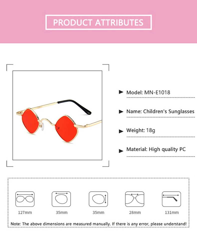 Trendy Children Sunglasses Boys Girls Metal Frame Vintage Square Punk Eyeglasses Kids Gold Red Mirror Eyewear Anti Glare