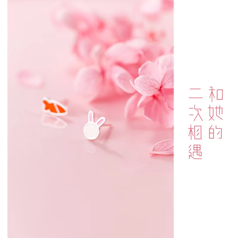 100% 925 Solid Real Sterling Silver Asymmetrical Animal Rabbit Carrot Stud Earrings Gift For Teen Girls Kids Lady DS1258
