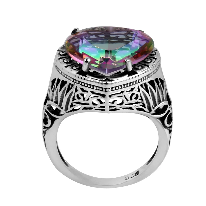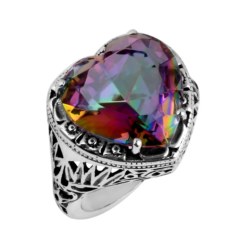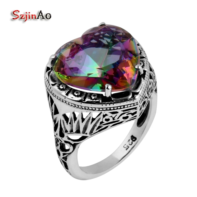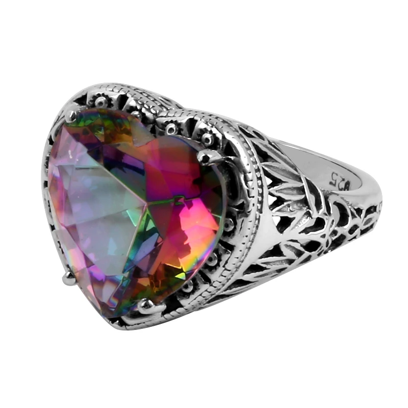 wholesale anillos Vintage Jewelry 925 Sterling Silver Rings Charm Rainbow Topaz Heart-shaped Stones For Women Gifts