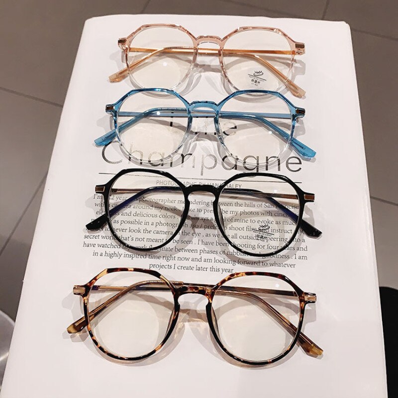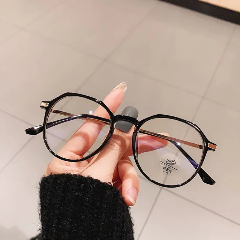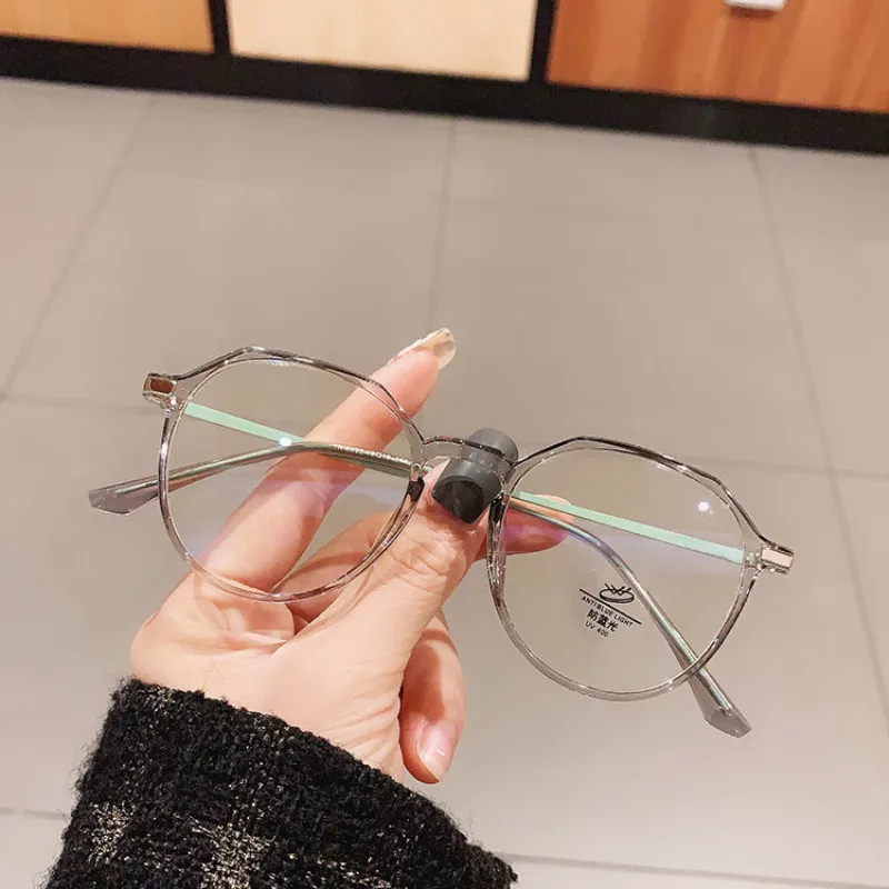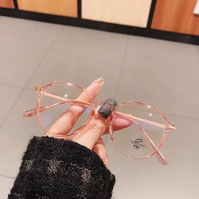 Vintage Art Fashion Metal Flat Mirror Eyeglasses Female Small Face Anti-blue Light Plain Polygonal Transparent Glasses Frame