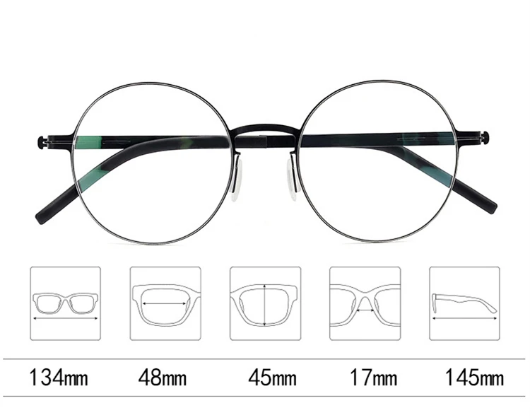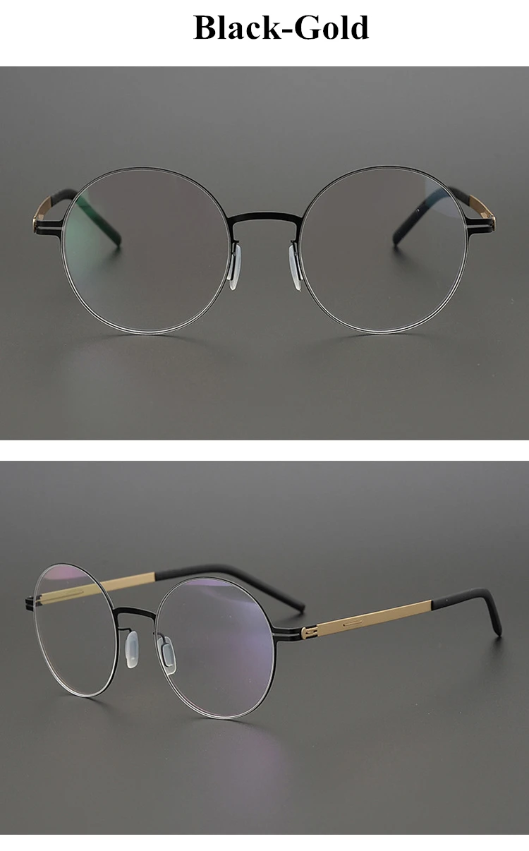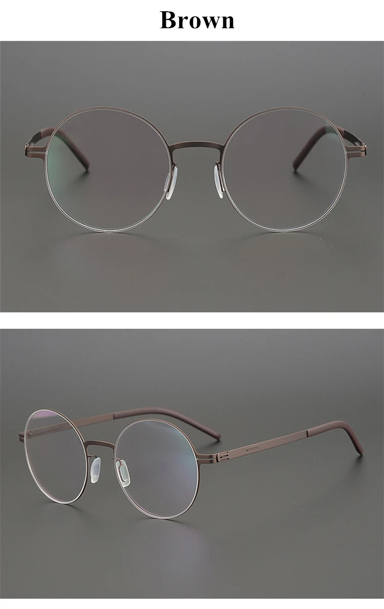Vintage Round Screw-Less Prescription Eyeglasses Frame Men Women Germany Myopia Optical Glasses Lightweight Brand Eyewear
