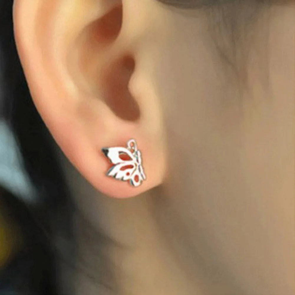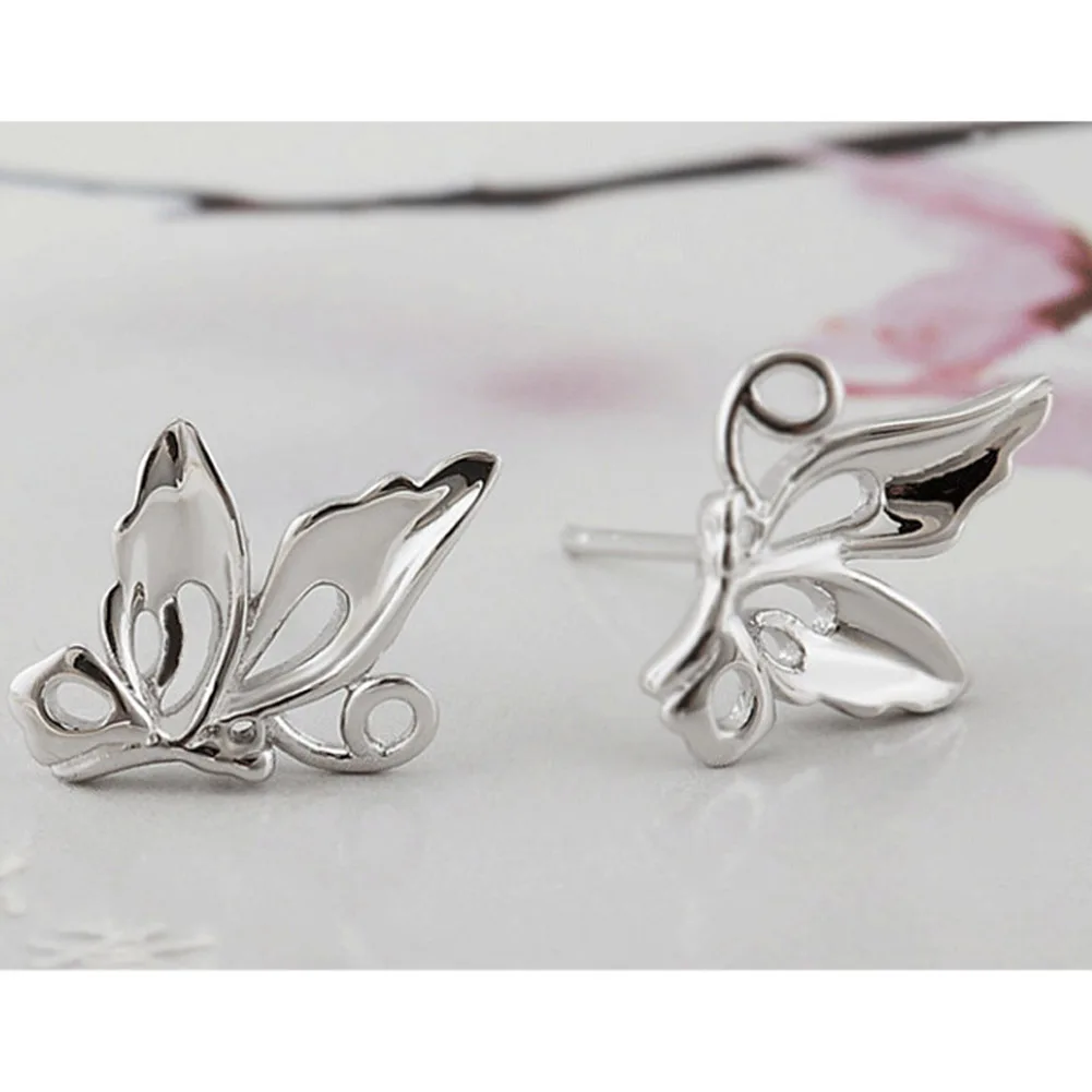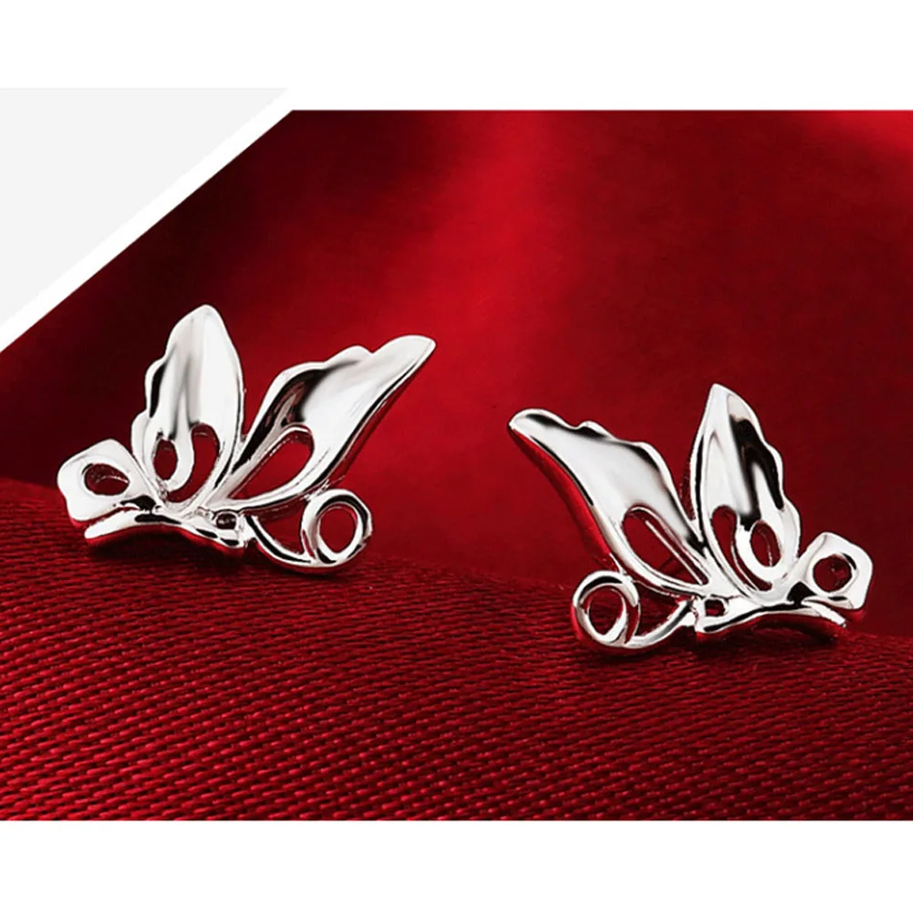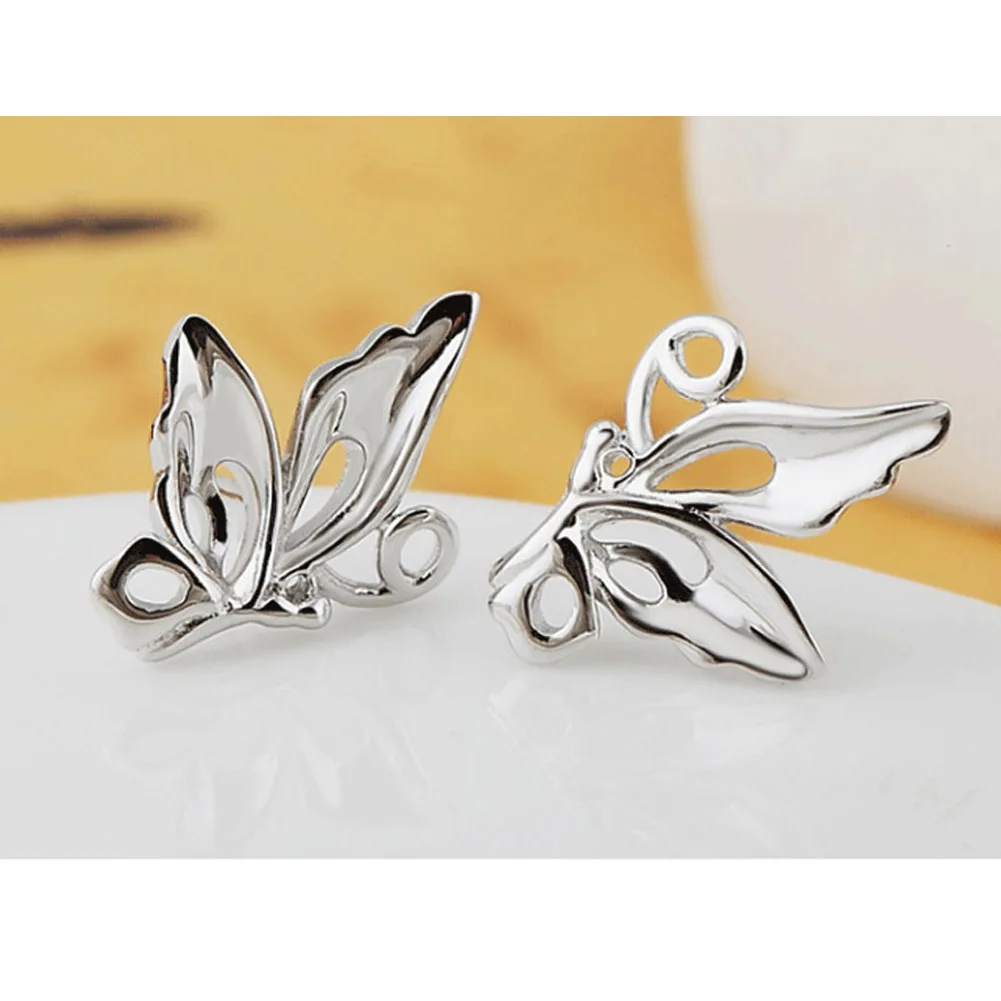 Women Happiness Butterfly Design Silver plated stud Earrings Ear Jewelry 1.35*0.95cm Fashion Europe Fashion