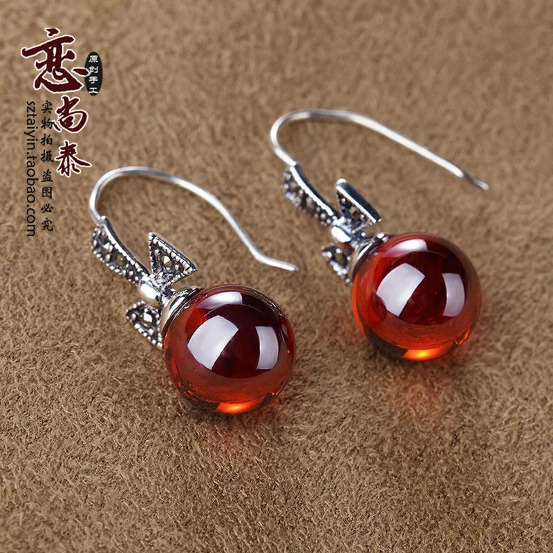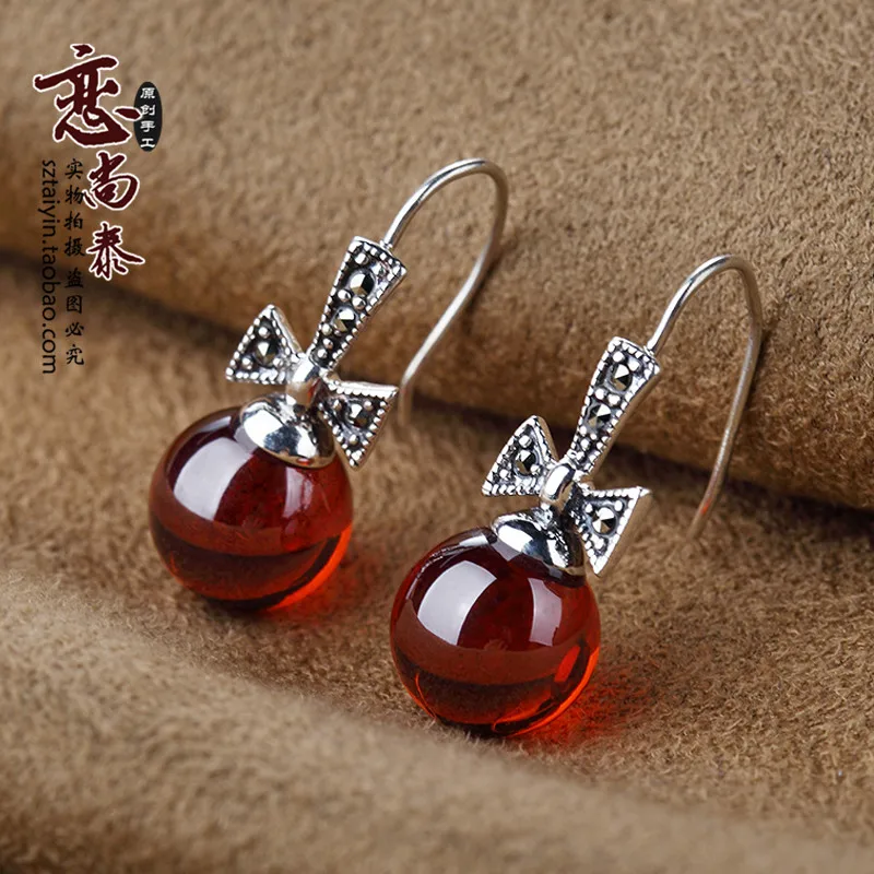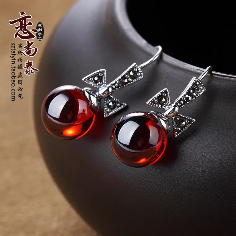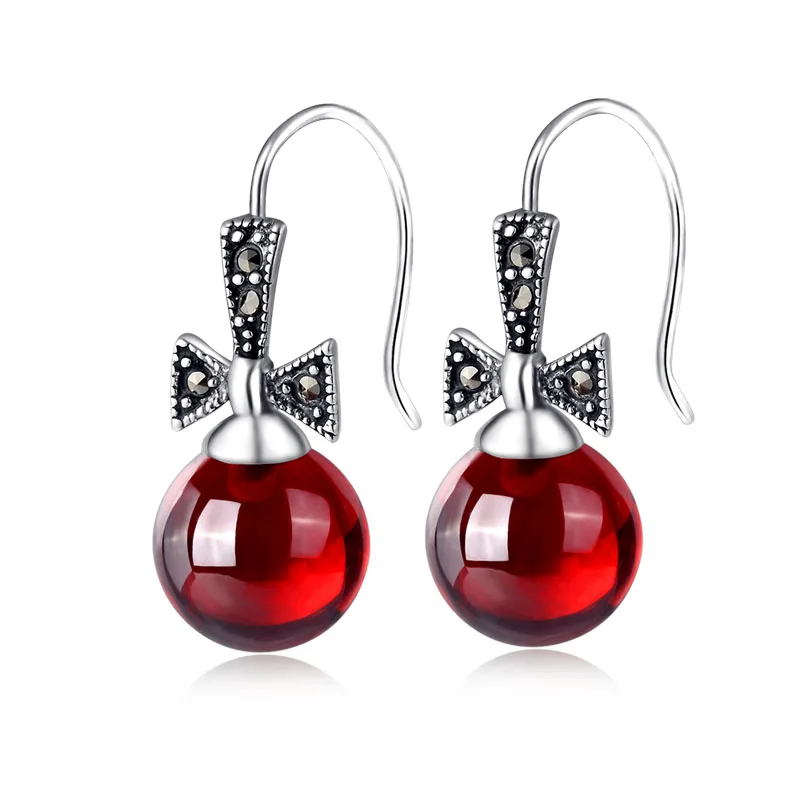 Xin Rui jewelry 925 Sterling Silver Earrings Silver Garnet Earrings Ear Hook bow lovely girl