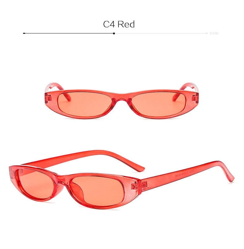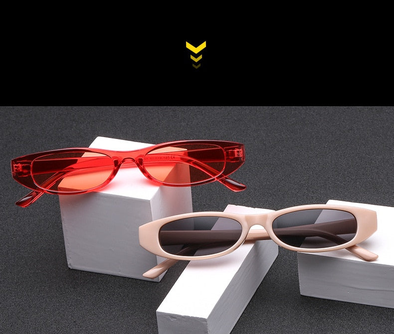 YOOSKE Vintage Rectangle Sunglasses Women Cat Eye Designer Ladies Small Frame Black Red Sun Glasses Brand Retro Skinny Eyewear