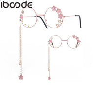 iboode Women Glasses Frames Sakura Star Pendant Metal Round Clear Lens Eyeglasses Girls Decorative