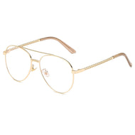 Unisex Golden Chain Pilot Eyeglasses Frame Clear Lens Spectacles Retro Classic Aviation Metal Glasses Frame for Men and Women