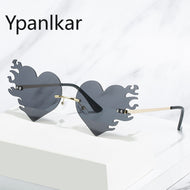 Heart Fire Sunglasses Women Rimless Sunglass Vintage Sun Glass Men Brand Design Eyewear UV400 Black Red Shades