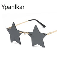 Vintage Unique Star Shape Mirror Rimless Sunglasses Women Clear Ocean Lens Eyewear Men Trending Sun Glasses Shades